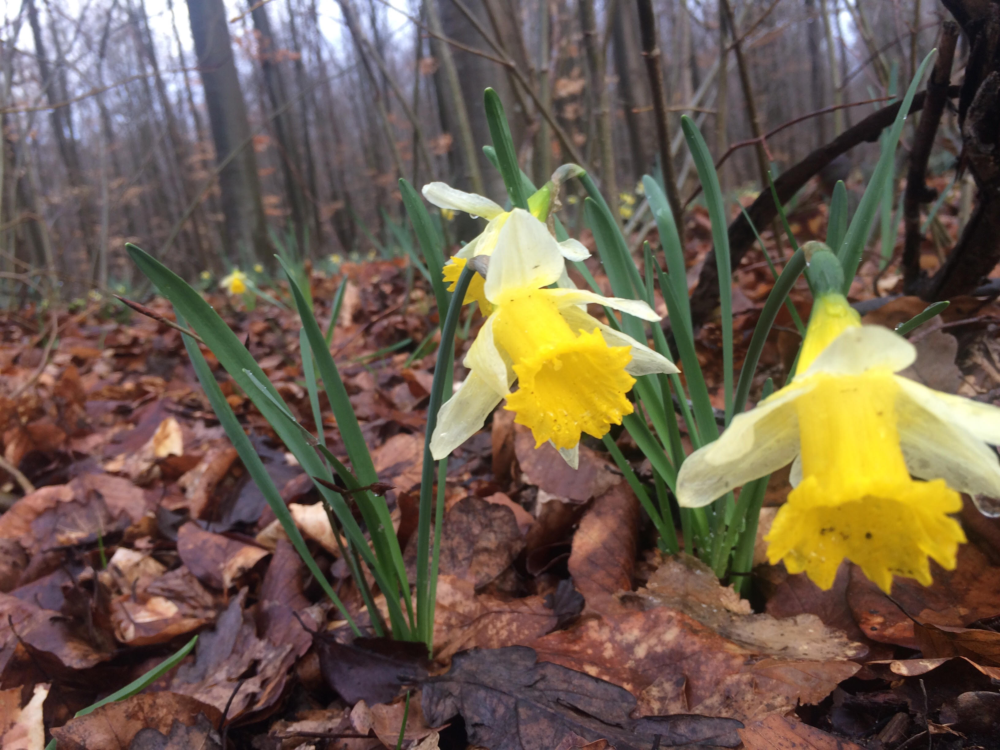 Nous partîmes à 9 et revînmes à 9 ce qui est un exploit compte tenu de la force du vent qui aurait pu emporter les plus légers d’entre nous.Beaucoup de pluie annoncée, nous n’avons eu que du soleil et pas mal de boue pour admirer d’interminables parterres de jonquilles en fleur dans la forêt de Chantilly.