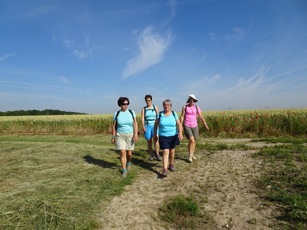 Les sentiers forestiers alternent avec des champs de céréales lesquelles cohabitent avec des graminées, des coquelicots, bourrache, chicorée…La nature est bien généreuse !