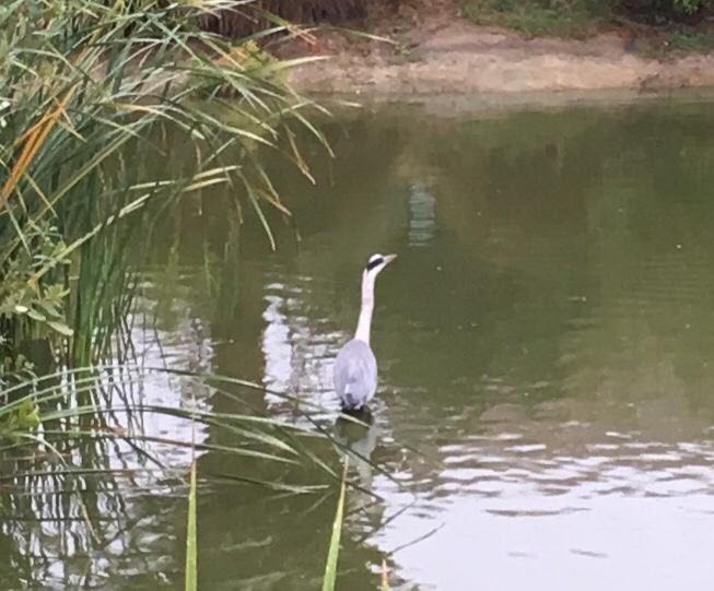 Nous avons vu un héron au milieu des roseaux entourant une mare très urbaine.