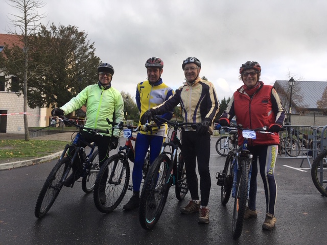 4 courageux Cyclos-VTTistes se sont lancés sur la Frépillonnaise VTT. Temps gris mais doux, la pluie de ces derniers jours a rendu les sentiers très glissants et très boueux. Pour nous qui manquons de technique, nous étions très contents de ne faire que le 17 kilomètres ! Parcours très bien fléché, nous avons roulé dans un secteur que nous ne connaissons pas (la forêt de Montmorency). Le soleil a daigné apparaître en fin de parcours, comme pour nous féliciter de notre performance. A l’arrivée, le nettoyage des vélos était obligatoire et nous avons bien apprécié le sandwich pour les uns, la soupe pour une autre ! Un grand merci à nos amis du club de Frépillon pour leur accueil. Nous venons à vos organisations avec toujours autant de plaisir.