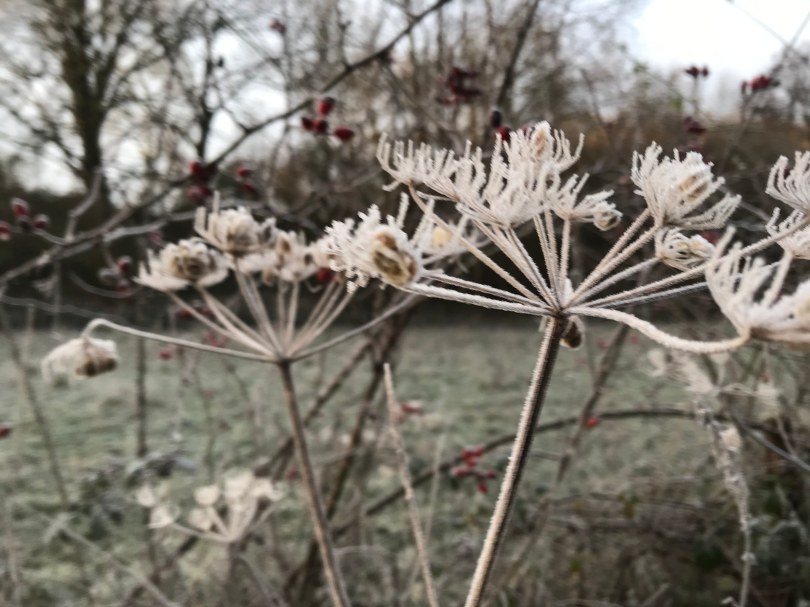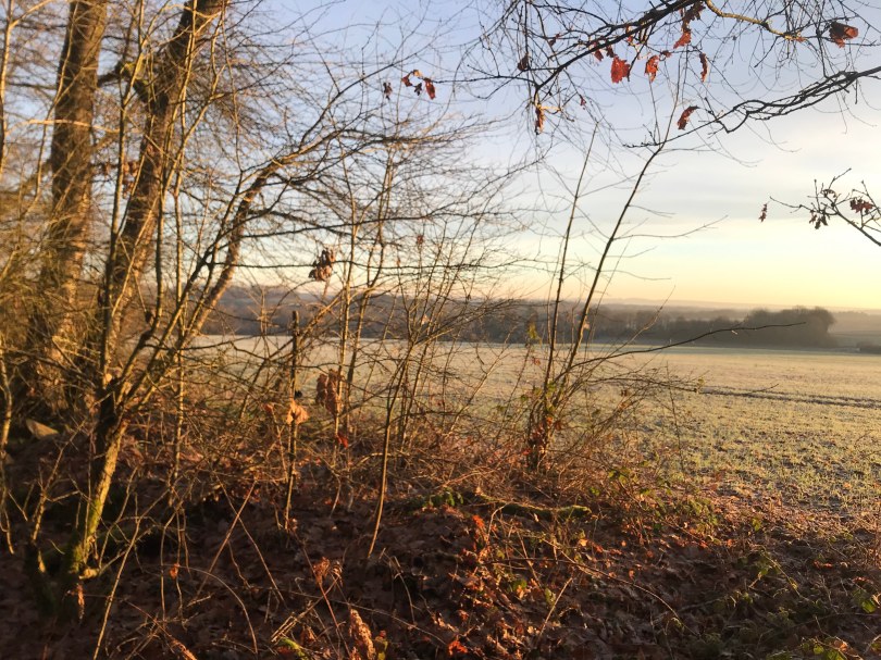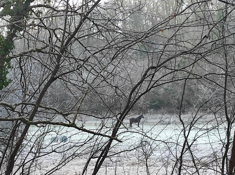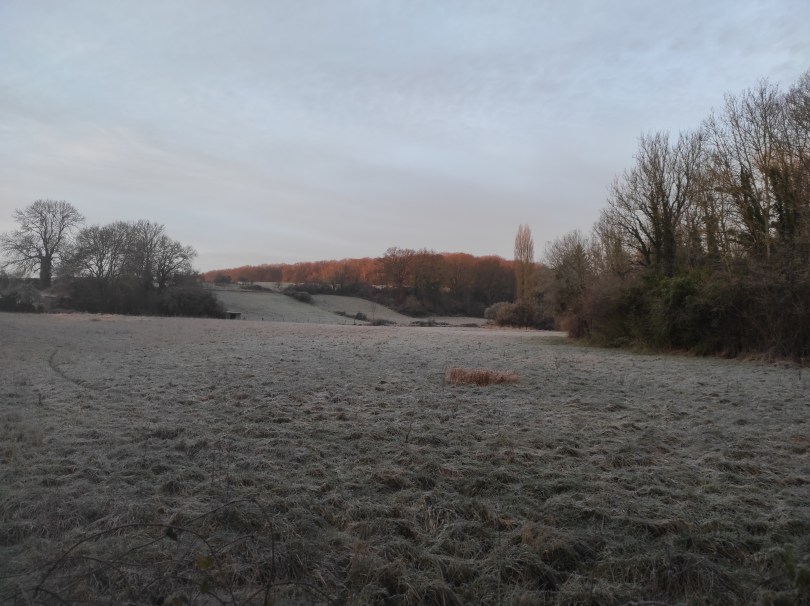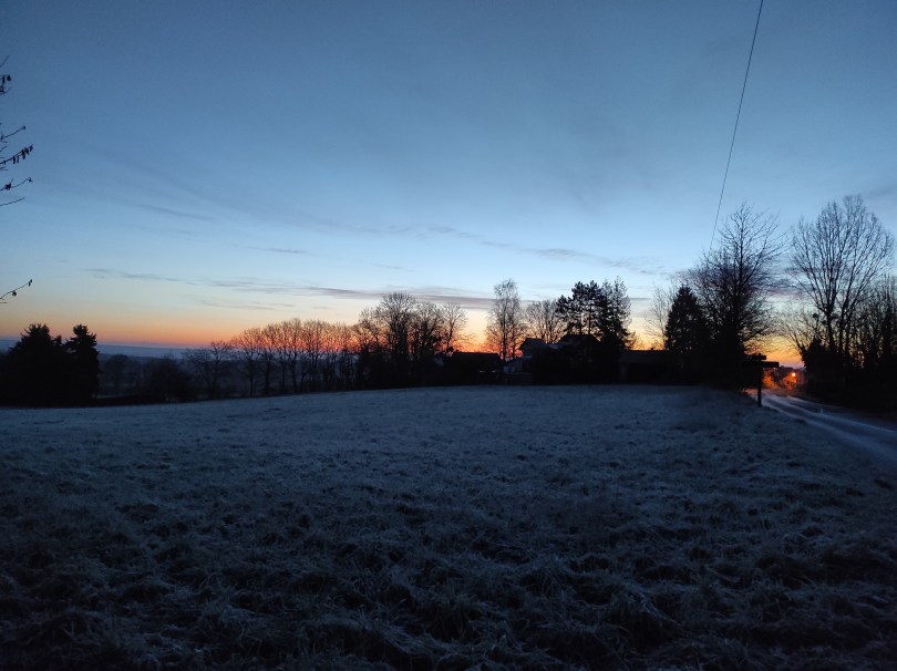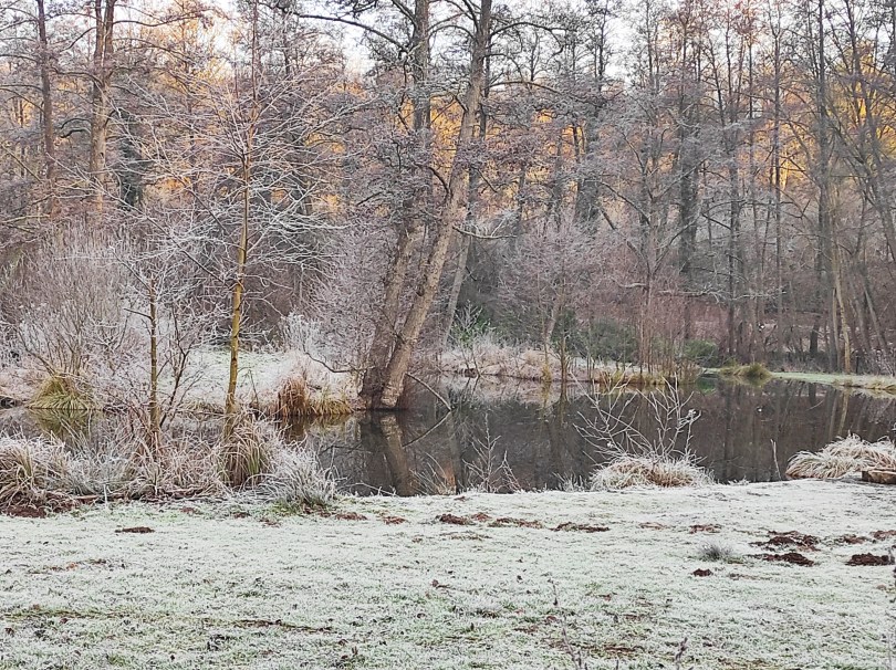 La balade de ce matin était superbe ! La météo au soleil levant et le givre hivernal ont contribué à notre plaisir, mais le parcours était aussi très chouette ! Oui nous savons, Domi on l’a déjà faite plusieurs fois… mais nous avons l’impression de découvrir à chaque fois de nouveaux détails … donc c’est comme si c’était nouveau, nous nous en lassons pas !