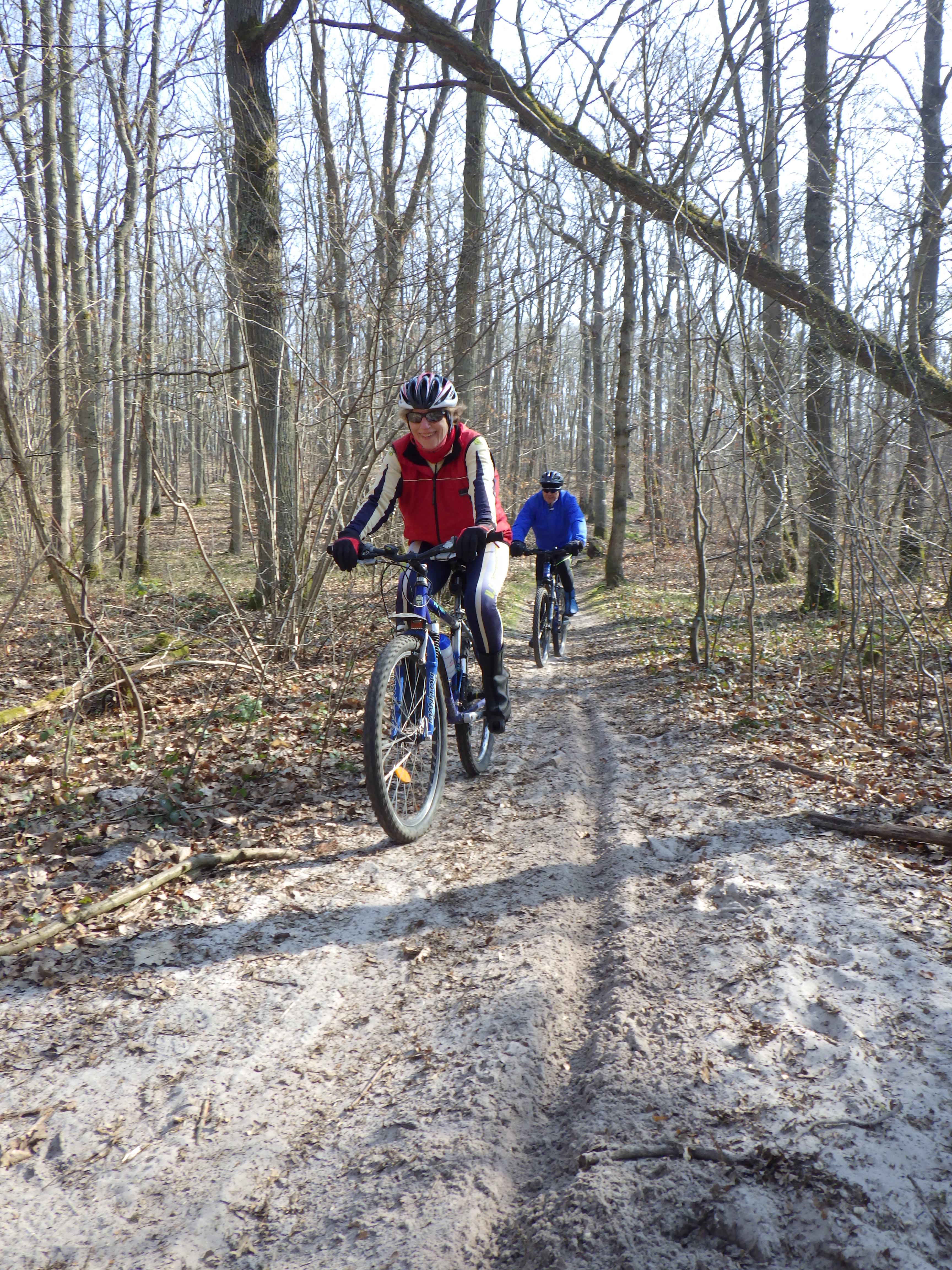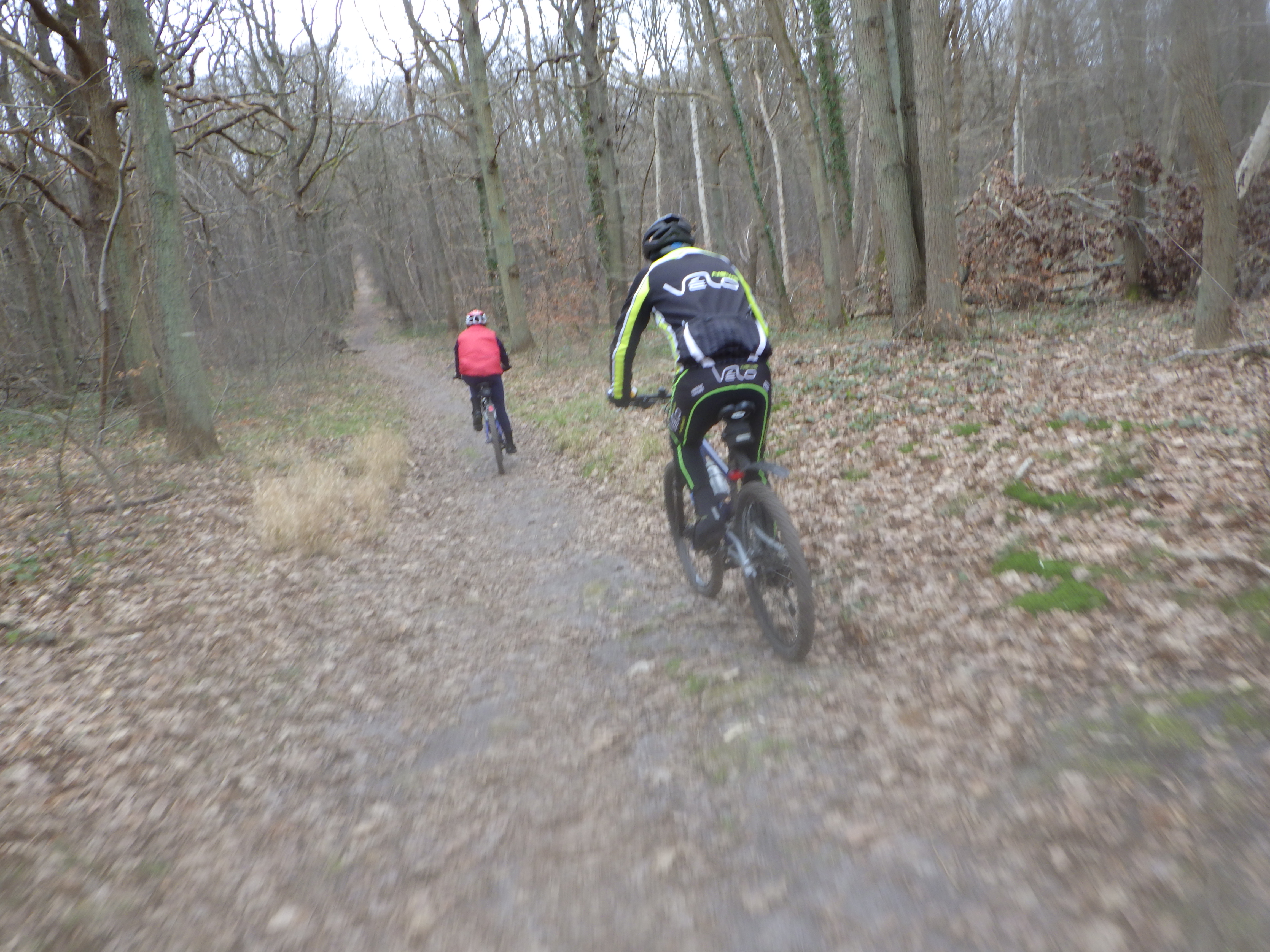Départ comme à notre habitude par la route et la piste-cyclable jusqu’à L’Isle-Adam. Nous rejoignons là encore Stors où nous montons en forêt. Sur place toujours le même menu : Une agréable boucle sur base d’un circuit type mais agrémenté de multiple petites alternatives. Nous roulons à bon rythme sur les chemins et routes forestières. Nous ne sommes pas les seuls à profiter de cette belle matinée. Marcheurs et joggeurs sont nombreux en forêt … sans oublier les participants d’une course d’orientation.