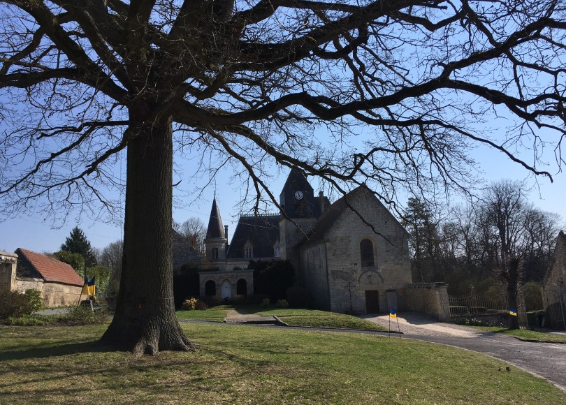 Nous partons sous un temps ensoleillé, la température est encore fraîche à 9h15, 7°C. Mais il suffit de quelques kilomètres pour se réchauffer. La sortie de Villers n’est pas des plus agréables, nous roulons sur une piste cyclable non entretenue, pleine de gravillons. Une dizaine de kilomètres plus loin, nous quittons la ville et ses grands axes pour découvrir la campagne et ses petites routes sur lesquelles nous prenons plaisir à rouler. Les villages s’enchainent avec de belles églises, des maisons de briques, des manoirs, de grands corps de ferme… La campagne se réveille sous le soleil printanier, des taches de couleur (du jaune, du rose, du blanc, du vert tendre) enchantent notre regard. Rouler sur d’autres terres est une belle aventure car tout est nouveau, nous roulons les sens aux aguets, le bonheur d’être là est perceptible sur nos visages et nous avançons tout en discutant de choses et d’autres, en enchaînant petites montées et descentes. La région n’est pas si plate ! Grandfresnoy, Arsy, Rémy, Monchy Humières, Antheuil Portes, Gournay sur Aronde… de nouveaux noms, de beaux villages de campagne… Nous atteignons le point de convivialité à Neufvy sur Aronde et découvrons le chêne majestueux de Max. A cette époque-ci de l’année, le chêne déploie sous nos yeux sa très belle ossature, et c’est sous sa protection, que nous posons, le temps d’une photo de groupe, avec… et oui, Evelyne, qui est amie de ce club et avec qui nous échangeons des nouvelles. Le temps de prendre une compote, une madeleine et une canette, et nous reprenons la route. L’allure est maintenue, la température est de plus en plus chaude, le soleil est bas sur l’horizon et nous roulons à contre-jour. Moyenneville, Beaupuits, Grandvilliers aux Bois, Rouvillers, Eraine, Bailleul le Soc… Nous sommes sur un plateau céréalier et les tracteurs sont actifs dans les champs, en pleine semence (maïs ? tournesol ? je ne saurais le dire)… et nous arrivons à Sacy. Là nous rentrons dans un espace de marais, une vaste zone humide et tourbeuse que nous faisons que traverser mais qui demanderait à être visitée. Une photo prise rapidement et nous arrivons sur Villers Saint Paul. Fin de la Randonnée, fin d’une très agréable matinée de cyclotourisme. 75 kilomètres au compteur.